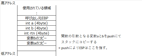 スタックは後入れ先出し構造であるため、結果として関数側では正しい順序で引数を参照できる。